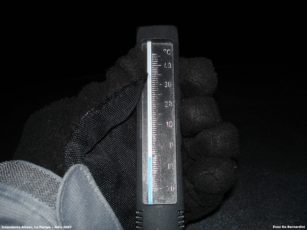 Entrada la noche del sábado la temperatura descendió hasta los 6º C bajo cero, pero esta vez con baja humedad y sin escarcha.