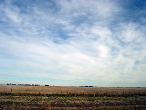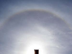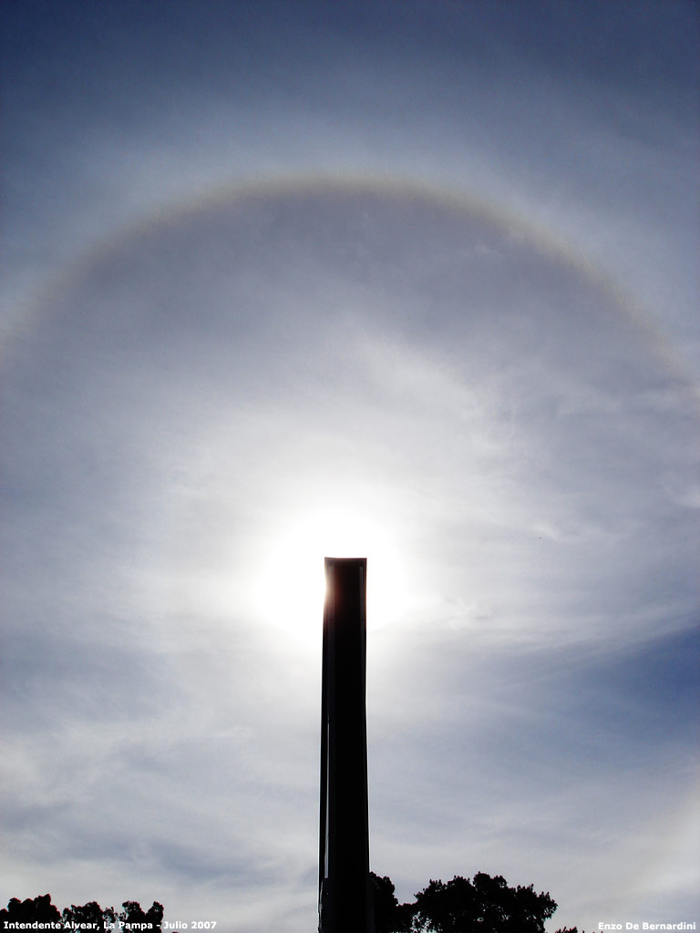 Paisaje de llanura regresando a Buenos Aires el domingo 15 (izquierda) Durante una parada del viaje pudimos observar un halo solar, fotografiado ocultando el Sol (derecha)