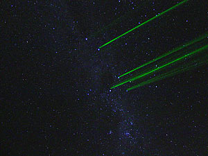 A la izquierda, Leonardo y Enzo poniendo el telescopio en estación. A la derecha, estrellas de la Crux y Centaurus marcadas con láser.
