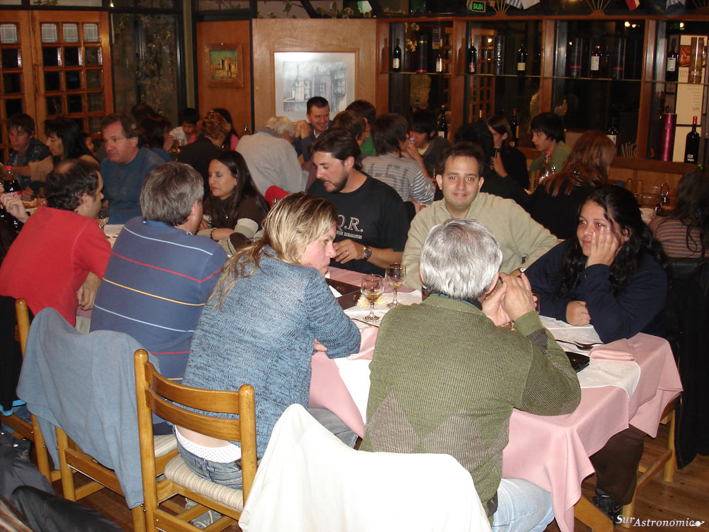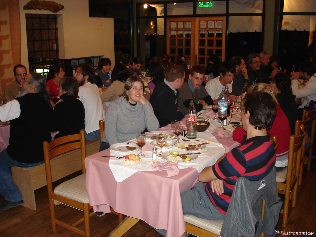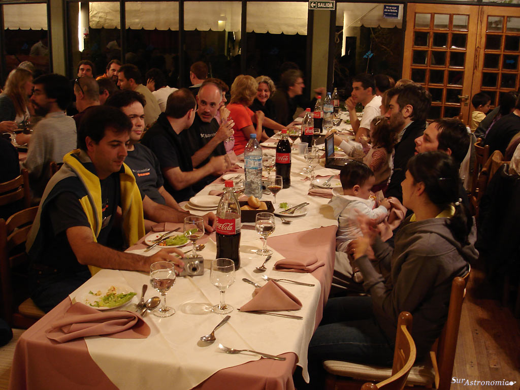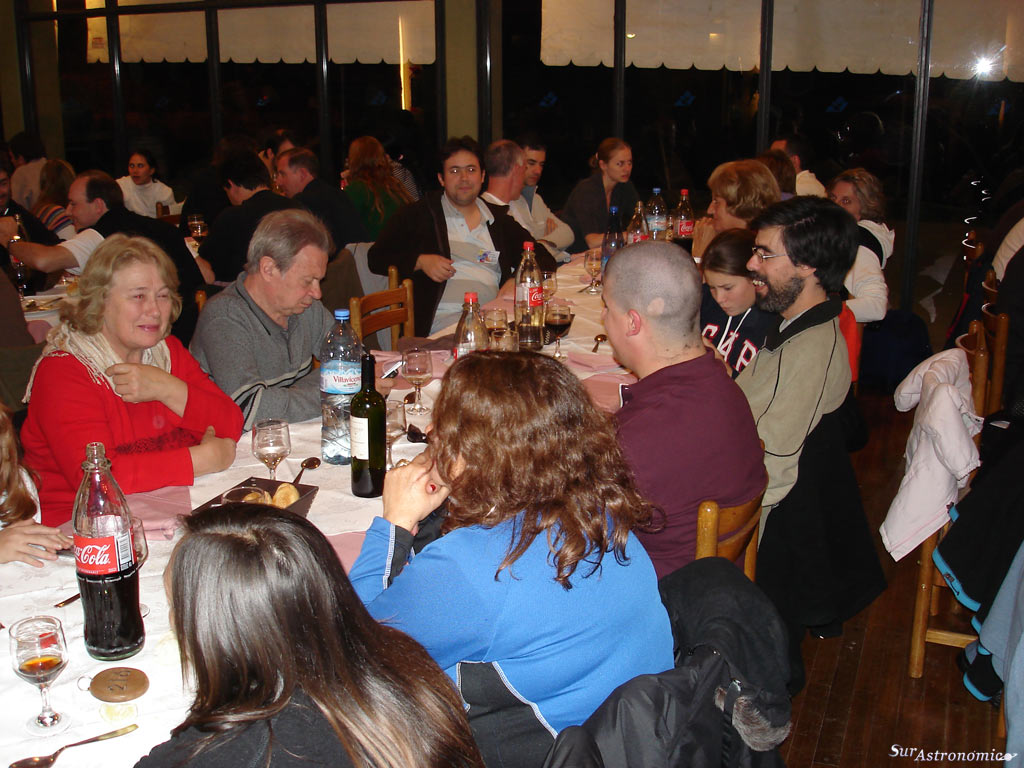 La cena del sábado, la última del encuentro. Siempre se disfruta el compartir esos momentos entre todos los participantes. Luego de la cena, nos preparamos para las observaciones que continuarían hasta las 5 de la madrugada. En el campo de observación hubo variedad de instrumentos, desde binoculares de distintas potencias hasta el telescopio Celestron de 11". Las dos actividades de campo programadas fueron el concurso de dibujo astronómico y la maratón Messier, ambas con interesantes premios que serían entragados al día siguiente luego de eveluar los resultados.