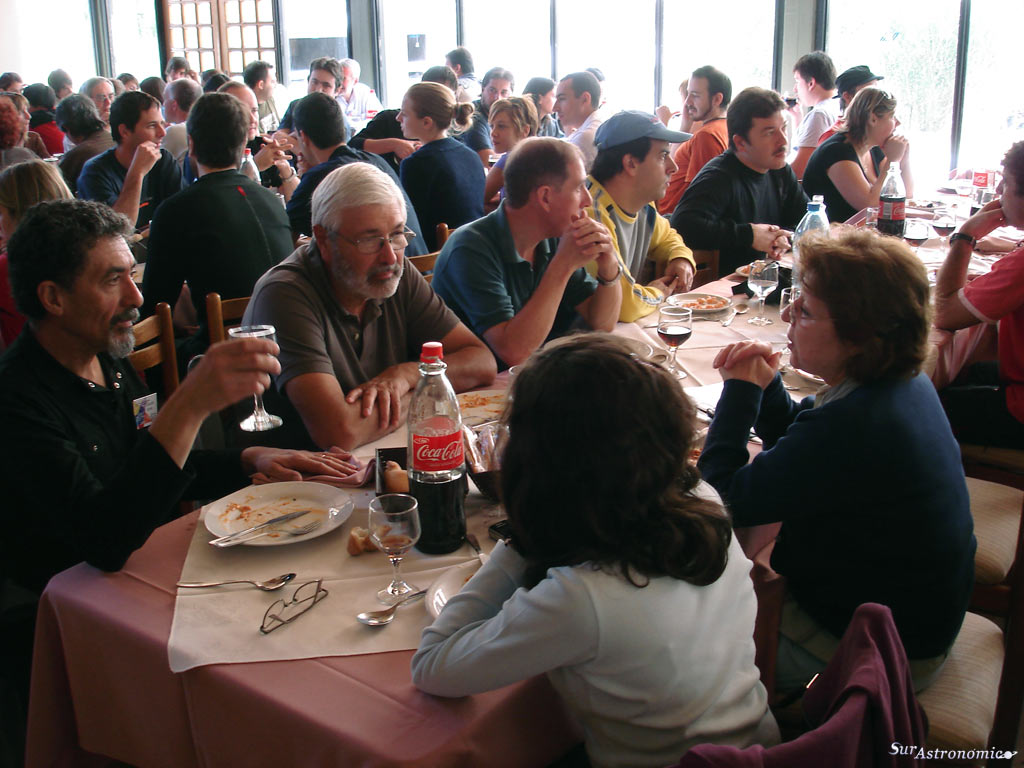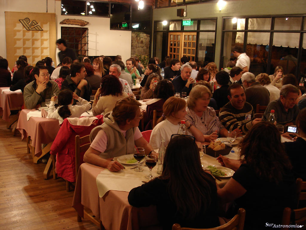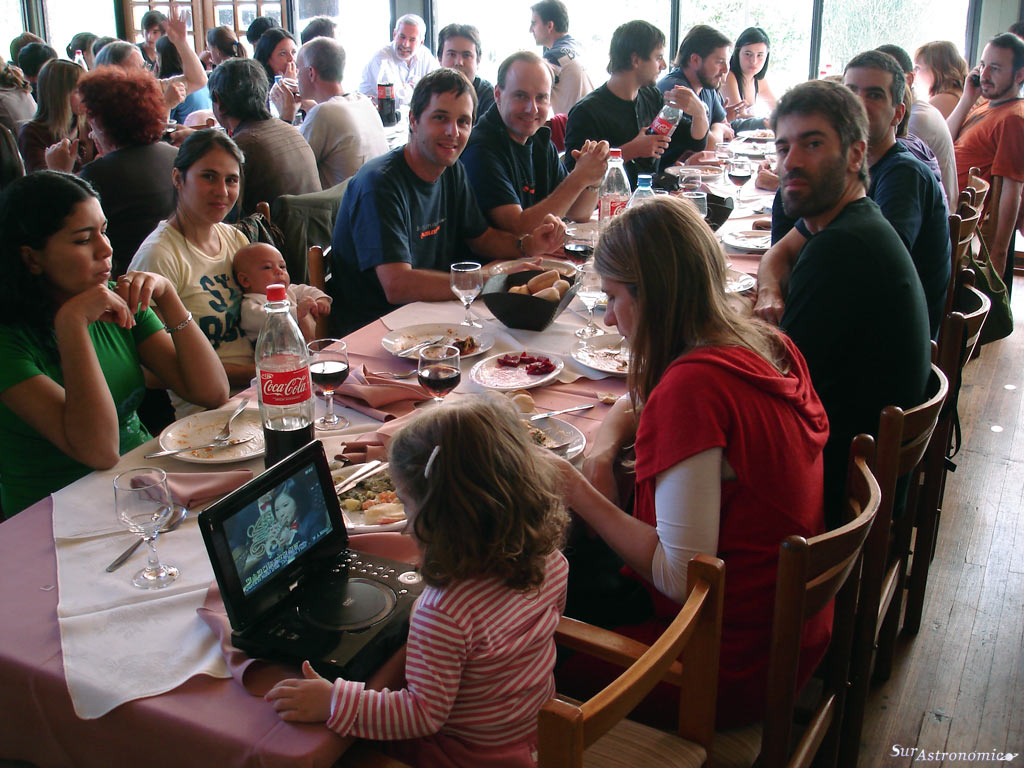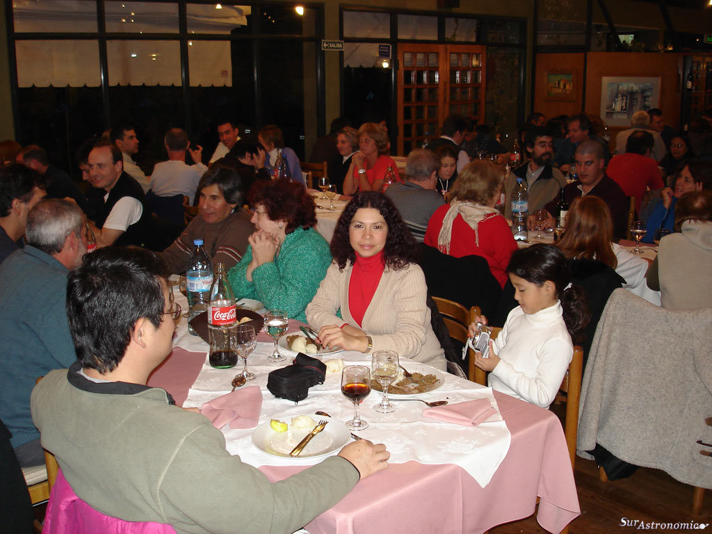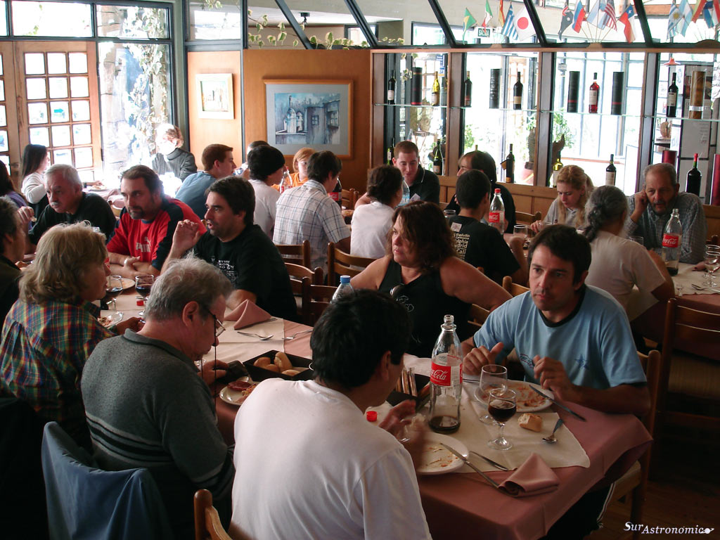 La cena del sábado, la última del encuentro. Siempre se disfruta el compartir esos momentos entre todos los participantes. Luego de la cena, nos preparamos para las observaciones que continuarían hasta las 5 de la madrugada. En el campo de observación hubo variedad de instrumentos, desde binoculares de distintas potencias hasta el telescopio Celestron de 11". Las dos actividades de campo programadas fueron el concurso de dibujo astronómico y la maratón Messier, ambas con interesantes premios que serían entragados al día siguiente luego de eveluar los resultados.