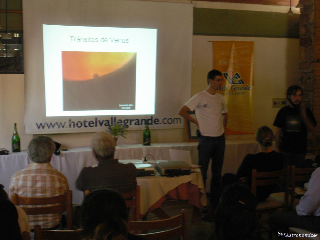 Las charlas siguieron con la ponencia de Leonardo Julio tratando el fascinante tema de la historia de los tránsitos de Venus, donde su observación fue fundamental para determinar el tamaño del Sistema Solar utilizando la paralaje solar en la medición de la Unidad Astronómica.