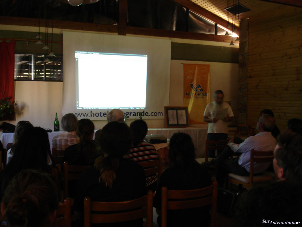 La primer charla del encuentro, sábado por la tarde. Disertación de Rafael Girola tratando el tema de las distancias astronómicas, las diferentes escalas y formas de medición.