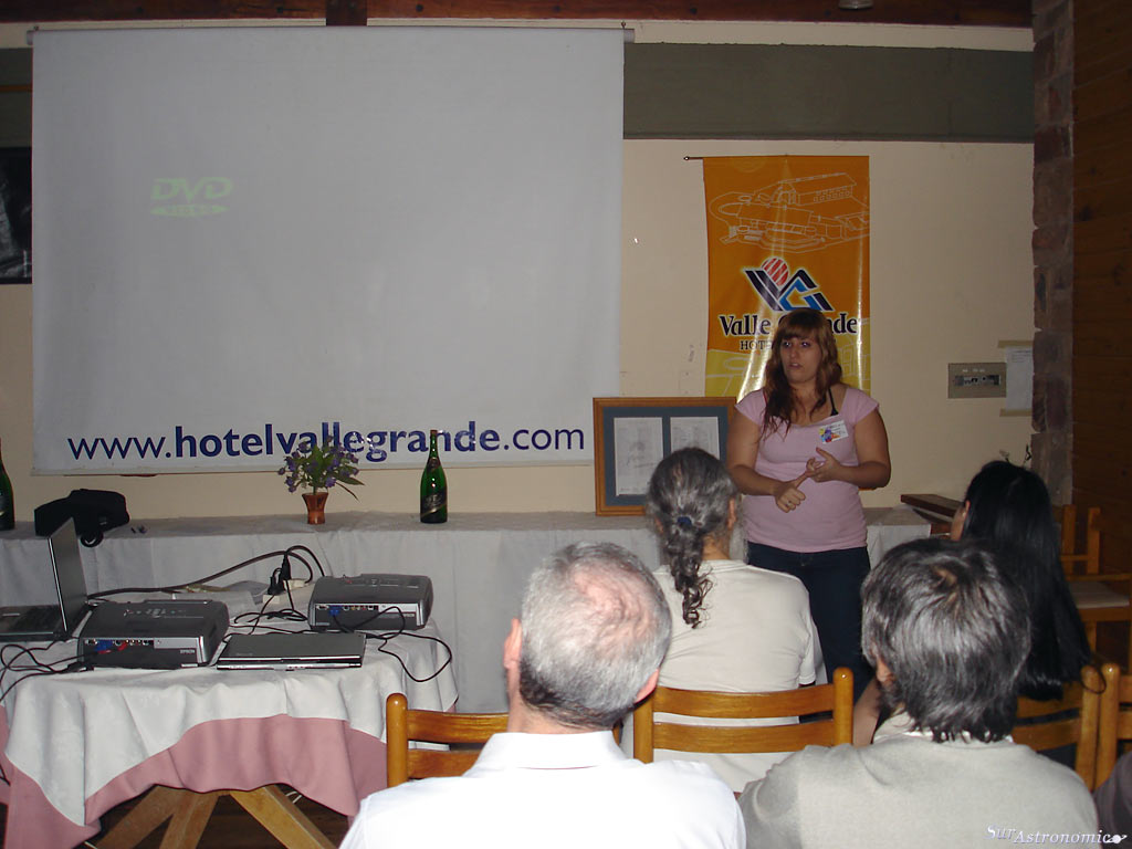 Continuan las charlas. Dedicada al tema de la contaminación lumínica en la Argentina, María Vivanco nos presentó su cortometraje "Apagón", un proyecto que planea informar sobre este preocupante tema. El vídeo cuenta con palabras de diferentes expertos. Este encuentro tuvo el privilegio de ser la primer oportunidad donde fue presentado, siendo los participantes los afortunados en verlo.
