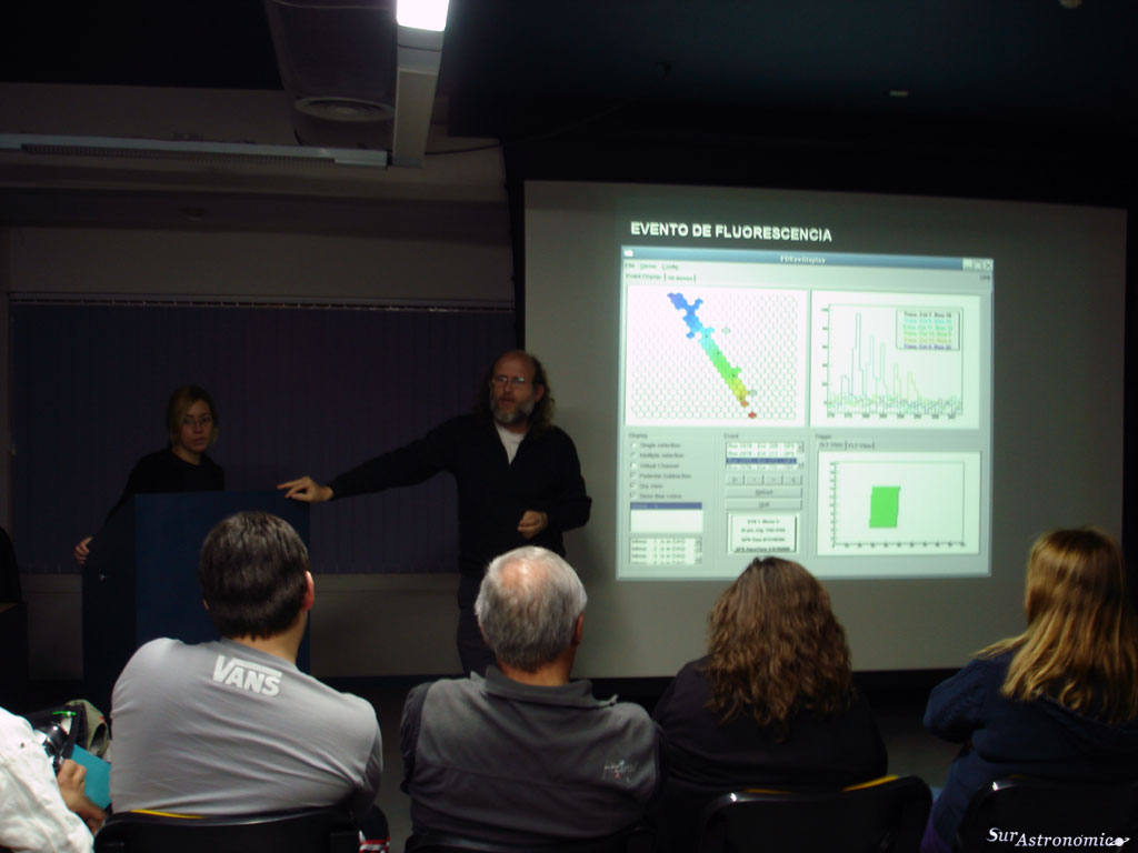 Luego de visitar el planetario nos esperaban en el Observatorio de Rayos Cósmicos Pierre Auger. Allí fuimos muy bien recibidos. Pasamos a la sala de visitas donde tuvimos una excelente presentación explicativa de la mano de Analía Cáceres. Durante la misma pudimos realizar muchas consultas sobre el tema, las que fueron hábilmente contestadas. Sin duda se trata de un fascinante proyecto científico que merecerá en el futuro una nota aparte.