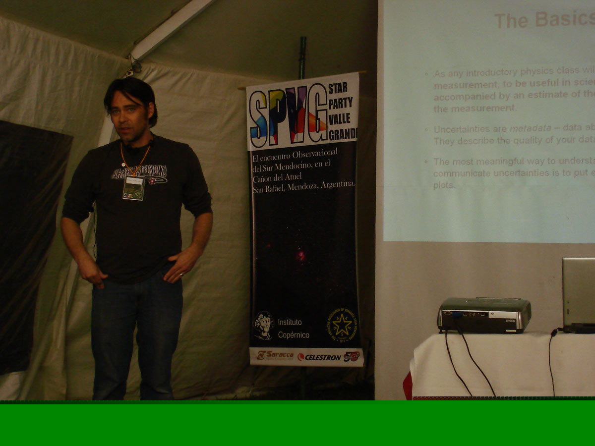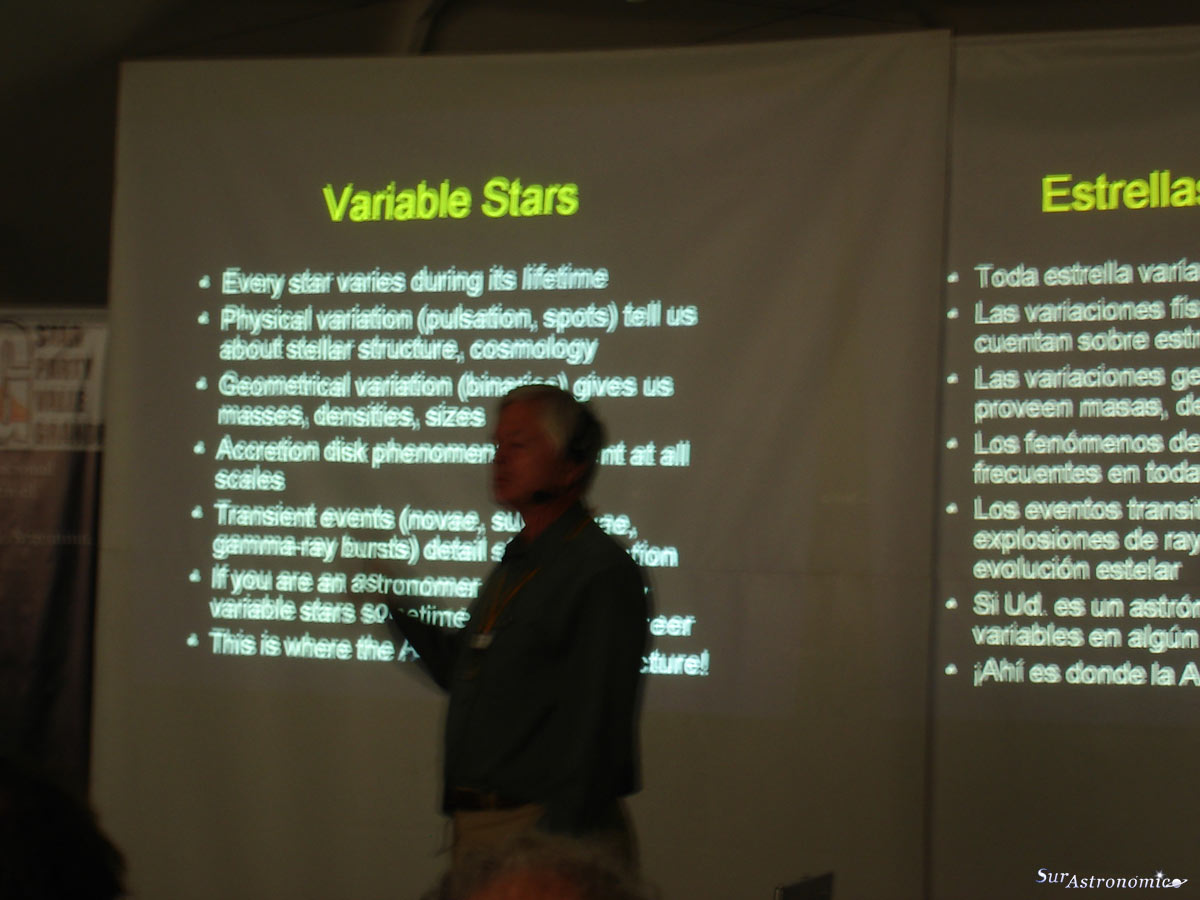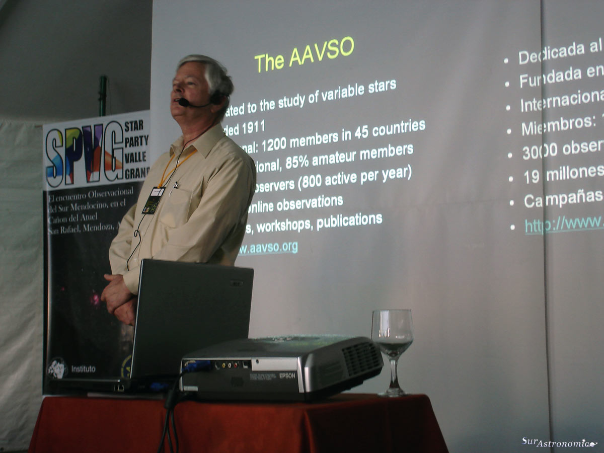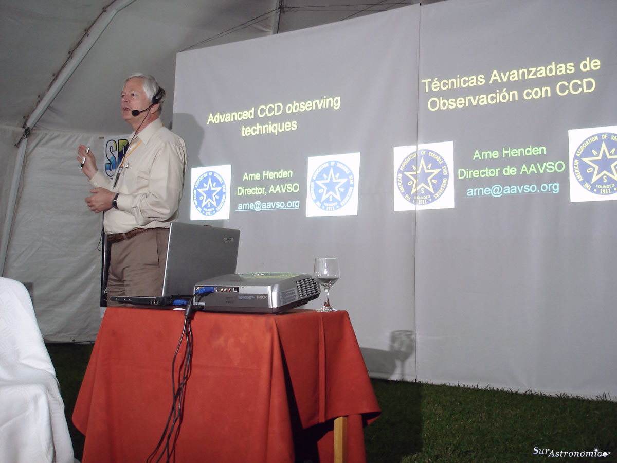 Continuando las actividades, tuvimos una espléndida charla sobre estrellas variables cefeidas en la Gran Nube de Magallanes, por Lucas Macri. Más tarde, Arne Henden nuevamente nos presenta una ponencia acerca del uso de las bases de datos de AAVSO.
