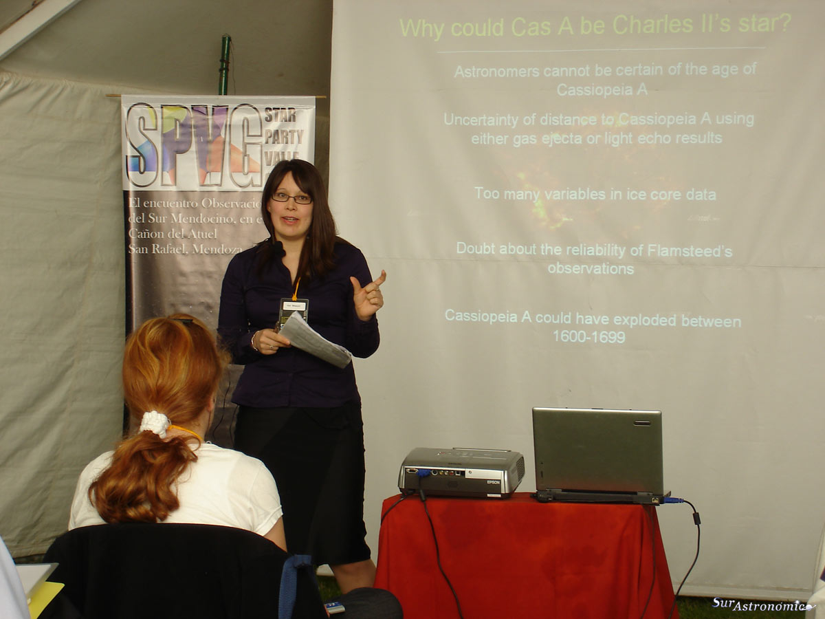 El viernes comenzó con un día a pleno de charlas. La primera dada por Martin Lunn y Lila Rakoczy, sobre datos históricos de la supernova Cassiopeia A. Luego tuvimos a Rafael Girola y Néstor Vinet tratando sobre la historia de las estrellas variables. Más tarde, Alexandre Amorim con el tema de Mira y las observaciones de Brazilicio.