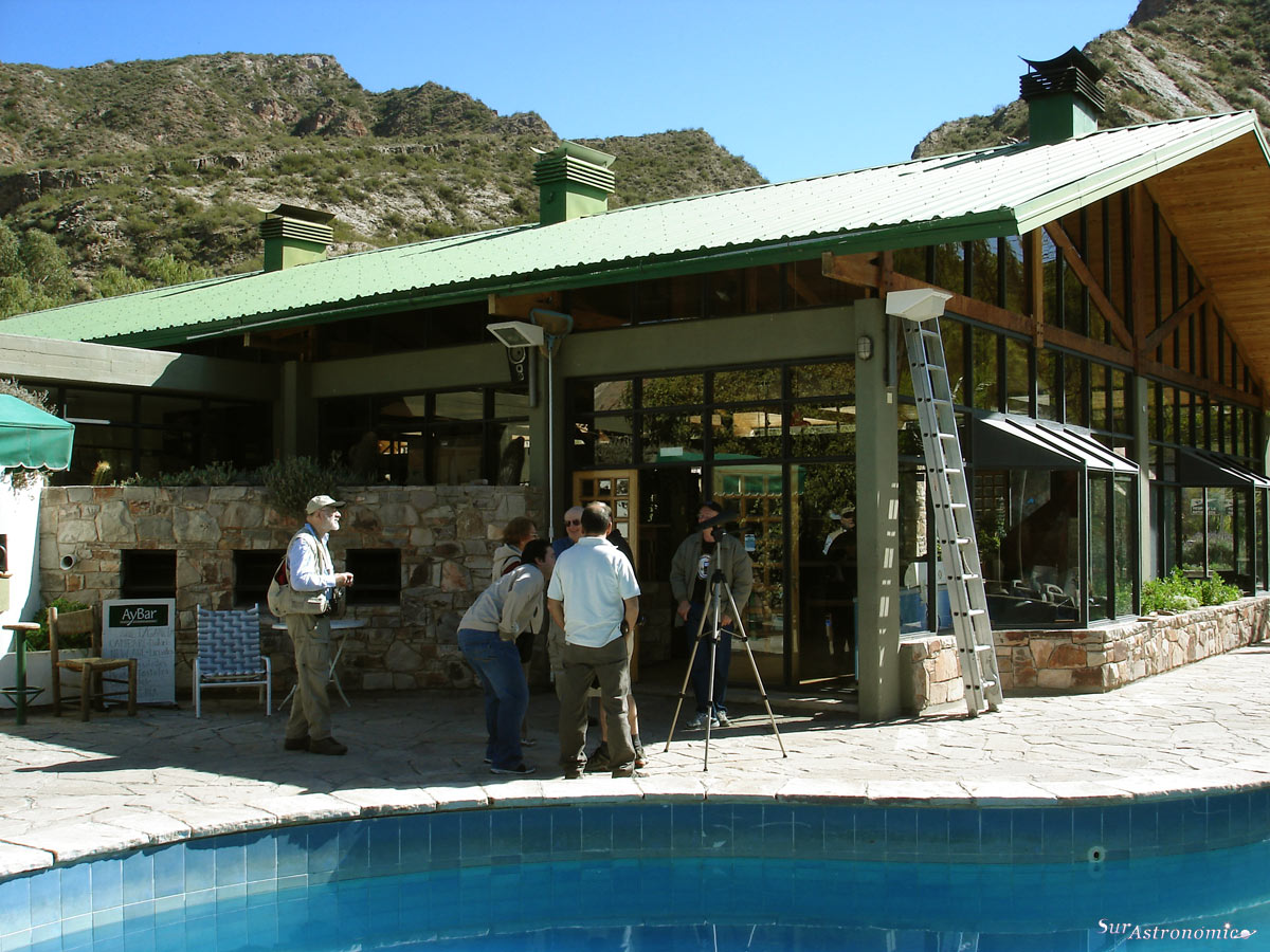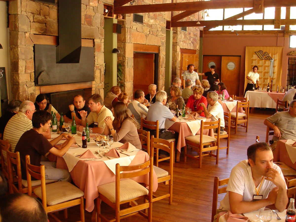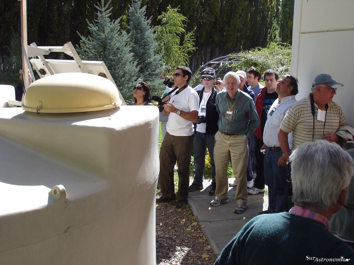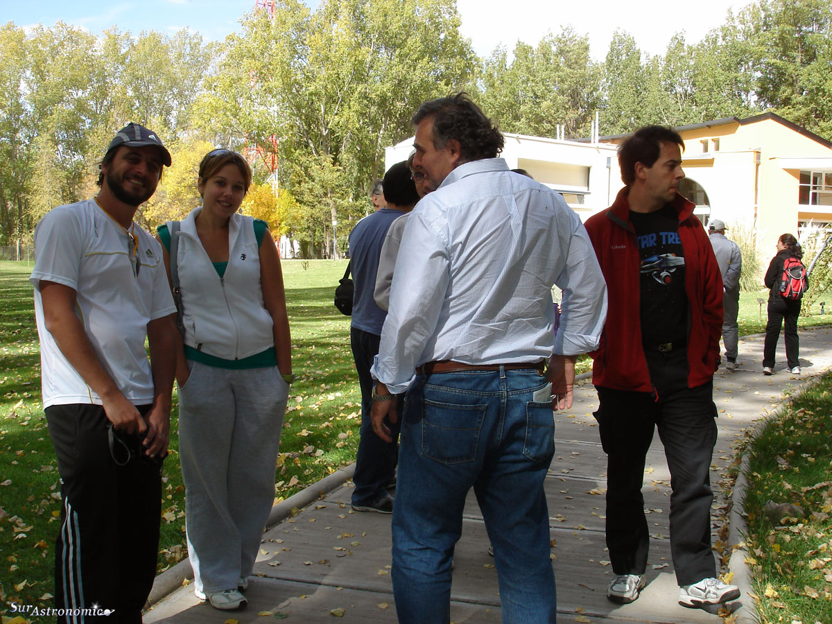 Temprano en la mañana del domingo partimos hacia la ciudad de Malargüe para visitar el Observatorio Pierre Auger y el Planetario de Malargüe. Primero visitamos el observatorio. En la foto de la izquierda: Marcelo Colucci, Mariángeles Iarza, Martón Mocellini y Rubén Barros. A la derecha, Carmen Arca, Gastón Ferreirós, Alejandro Tombolini, Sebastián Otero, Hernán Soulages, Arne Henden, Rubén Barros, Martón Mocellini y Anselmo López.