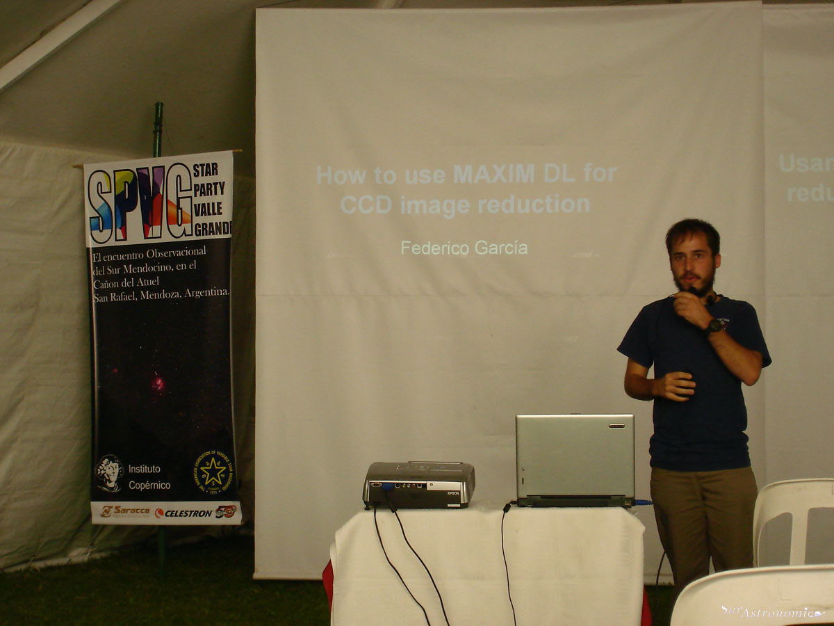 Continuando con las charlas de la tarde del sábado, Michael Koppelman dictó una presentación sobre el análisis de la incertidumbre en las observacines fotométricas y la importancia, luego Federico García nos guío en el uso del software Maxim DL en la reducción y análisis de imágenes.