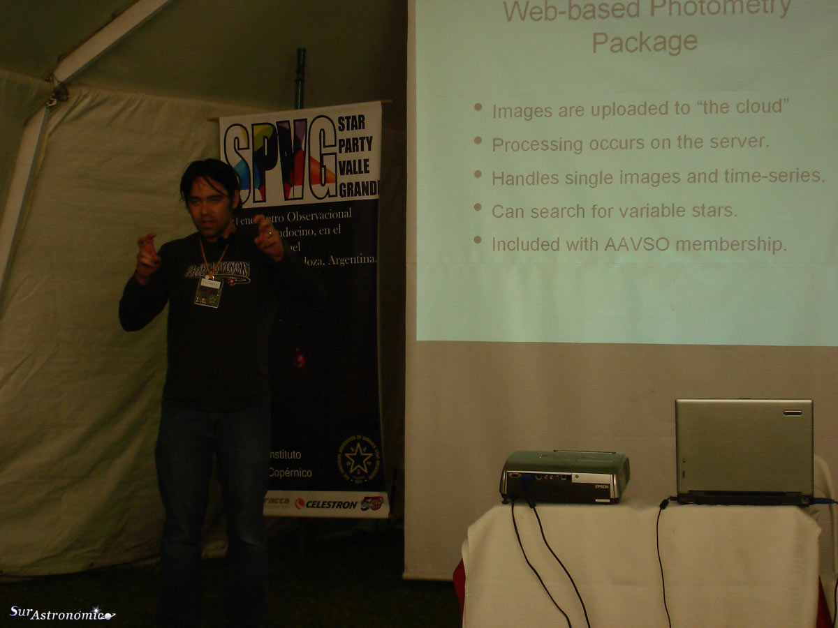 Seguidamente, Jaime García trató el tema de l abúsqueda de períodos de estrellas variables utilizando una aplicación online producto de la AAVSO. Más tarde, una nueva charla de Michael Koppelman sobre el uso de Photometrica, otra aplicacion online de AAVSO capáz de realizar fotometría diferencias de múltiples imágenes.
