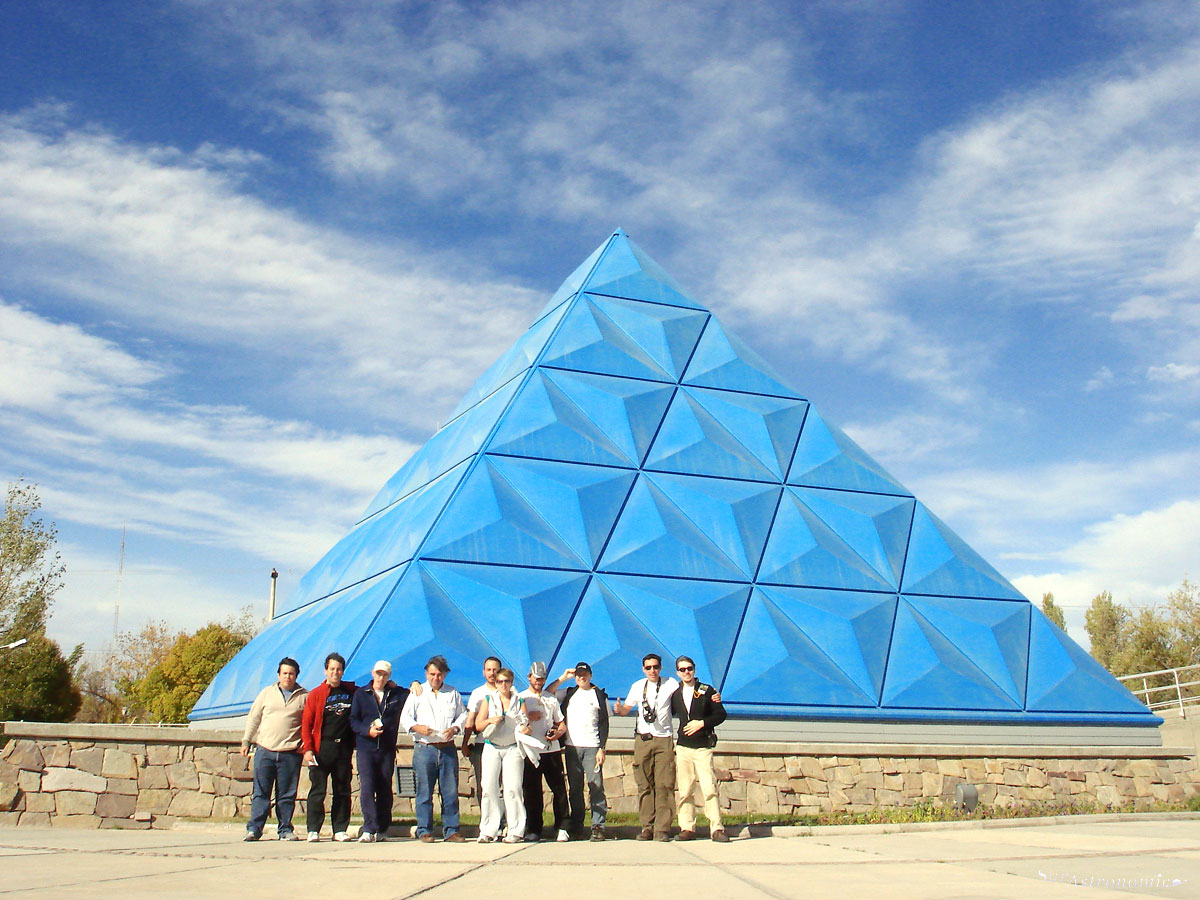 Luego de la visita al Observatorio Pierre Auger tuvimos la oportunidad de disfrutar una función en el Planetario de Malargüe. En la primer imagen tenemos a Hernán Soulages, Rubén Barros, Sebastián Otero, Martón Mocellini, Martín Tellechea, Mariángeles Iarza, Marcelo Colucci, Alejandro Tombolini, Gastón Ferreirós y Enzo De Bernardini. Dentro de la pirámide del planetario, en la imagen de la derecha, vemos a Sebastián Otero, Marcelo Colucci, Alejandro Tombolini, Martín Tellechea, Gastón Ferreirós y Mariángeles Iarza.