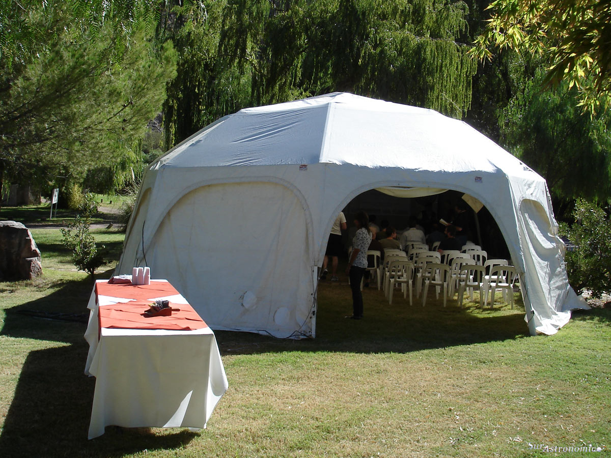 La carpa especialmente preparada para las charlas, dentro del predio del hotel Valle Grande.