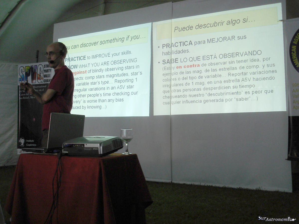 Luego de la pausa, Víctor Buso trató el tema de nuevas estrellas variables en la cruz del sur. Seguidamente, Raúl Podestá expuso las actividades en estrellas variables en LIADA.