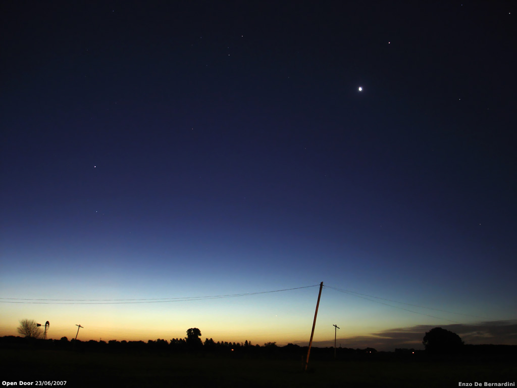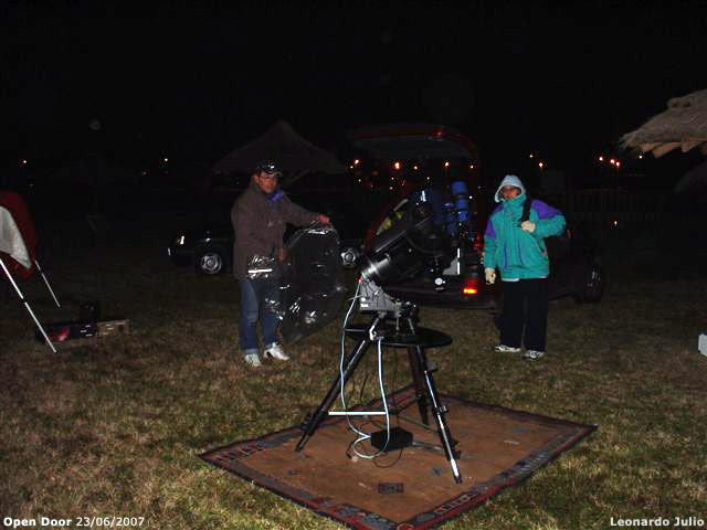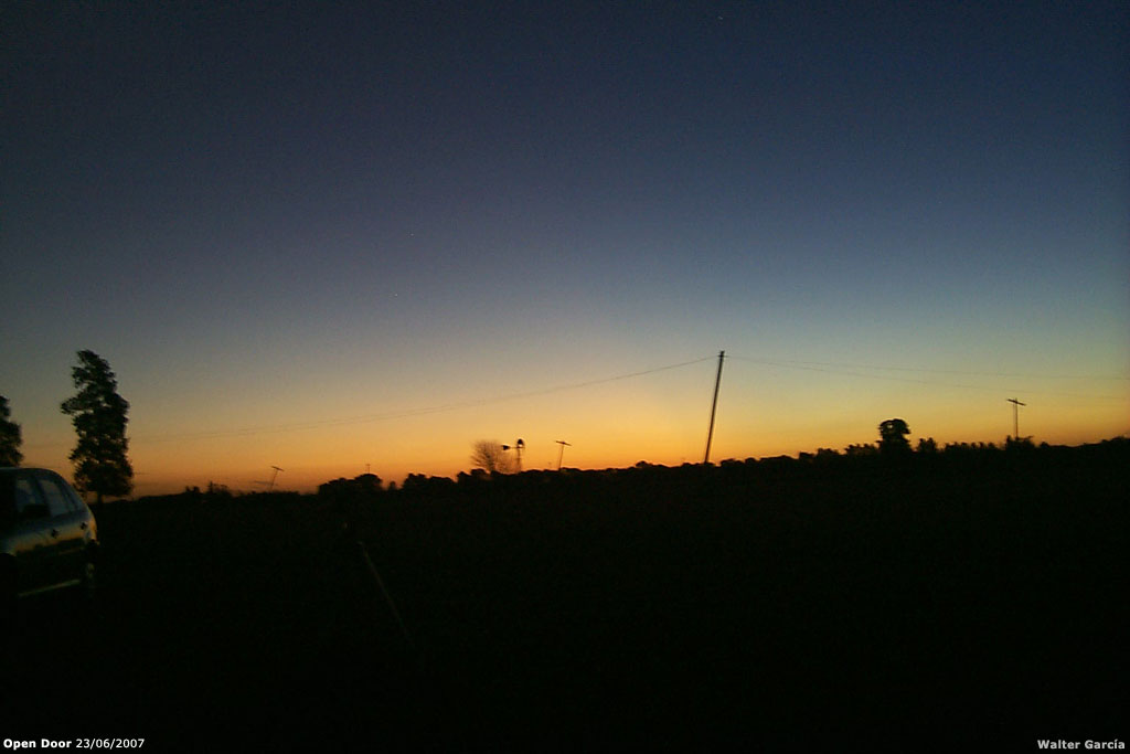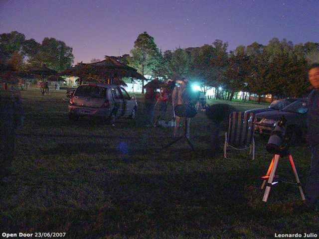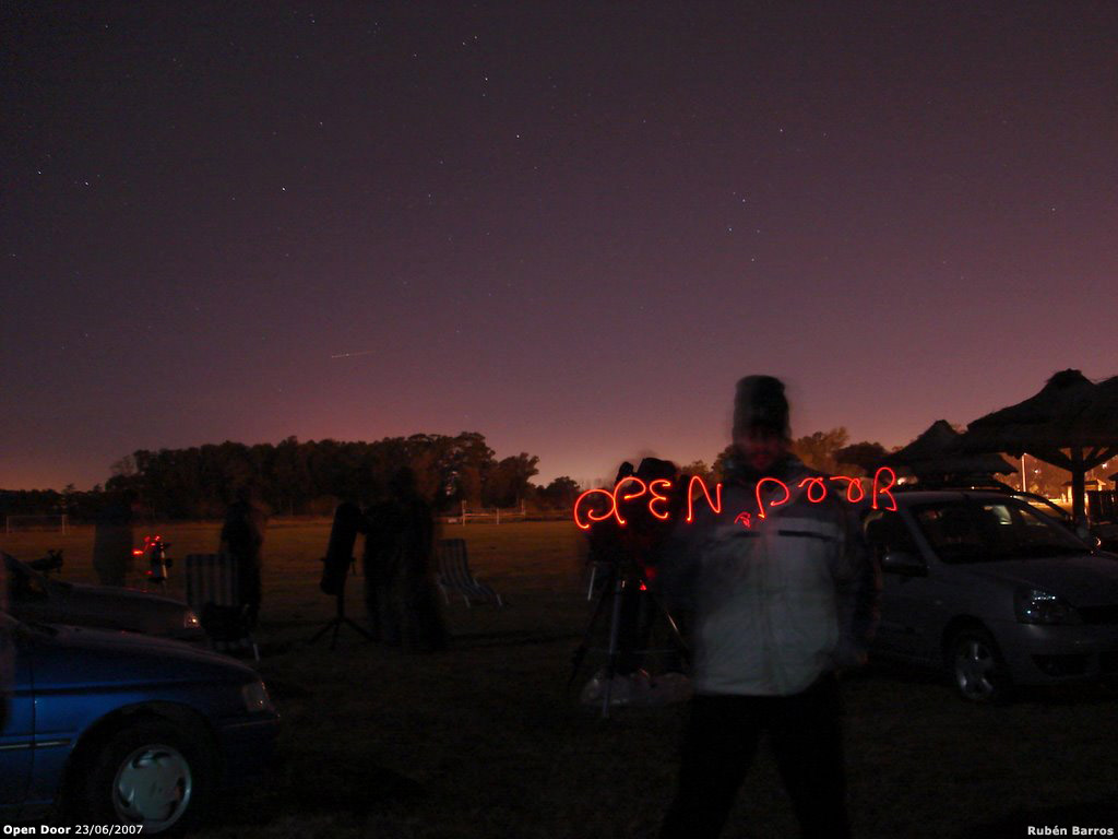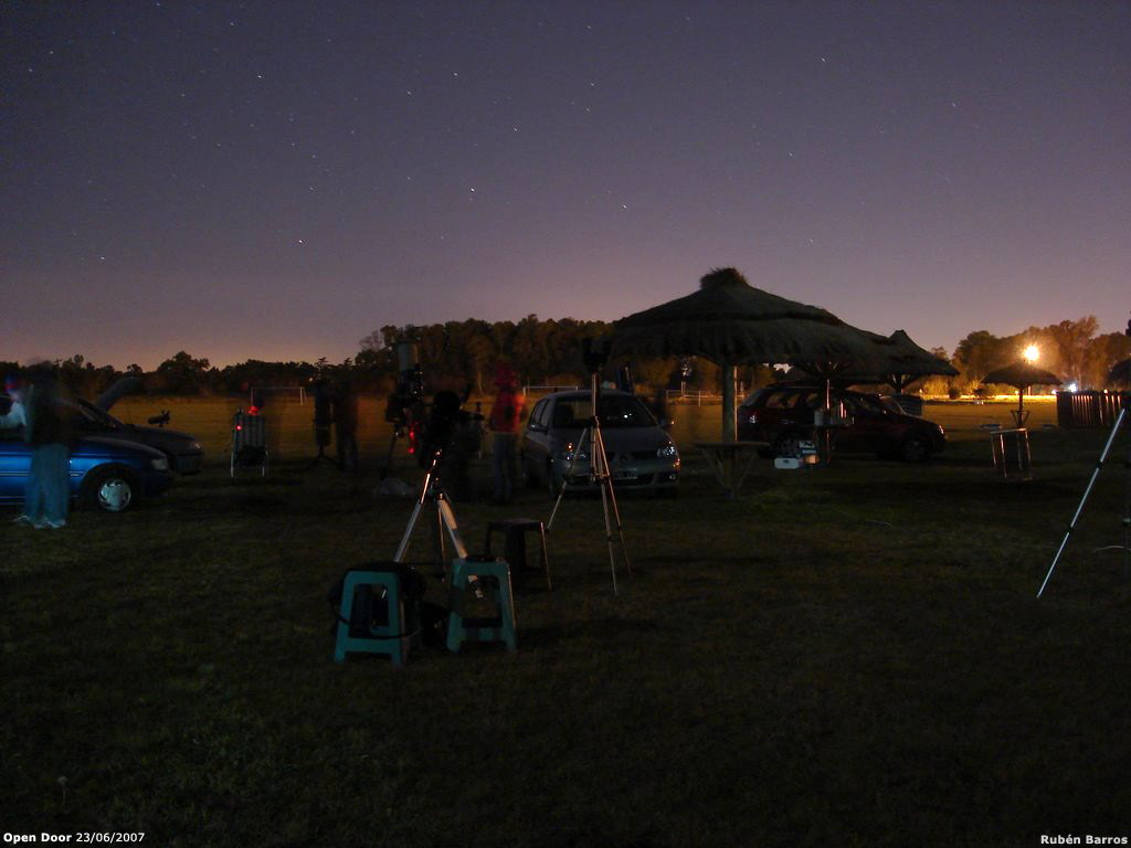 El día sábado 23 de Junio el grupo Próxima Sur organizó un encuentro astronómico en la localidad de Open Door, provincia de Buenos Aires, donde participaron 20 aficionados, llevando sus telescopios y cámaras, y compartiendo la noche de observación que comenzó poco antes de la puesta de Sol y se prolongó hasta bien entrada la madrugada. Las condiciones fueron buenas, con cielo totalmente despejado y clima frío, llegando la marca del termómetro a 4º C bajo cero.