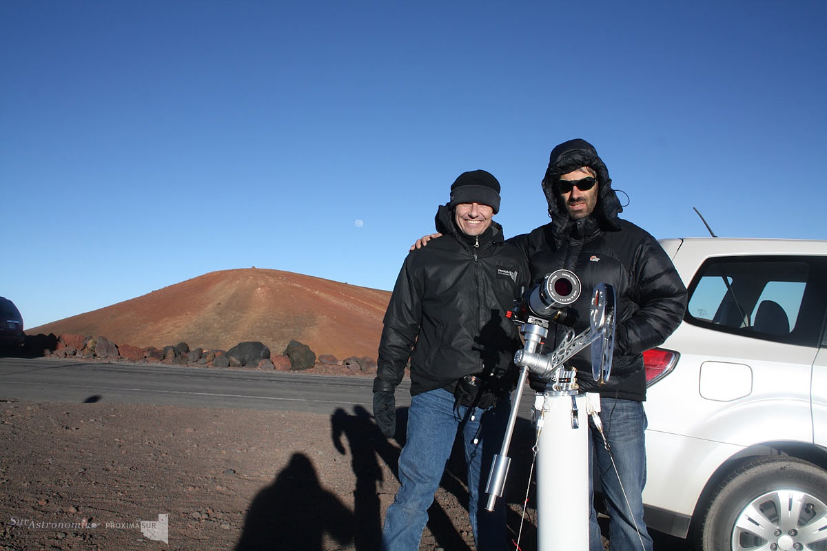 Actualizaciones desde Hawaii para Sur Astronómico: Alejandro Tombolini y Andrés Vattuone de Próxima Sur, enviando sus novedades e imágenes antes y después del tránsito de Venus. El comienzo del tránsito sobre el disco solar es el 5 de Junio a las 22:10 UT (19:10 Argentina) y prodrá ser disfrutado en directo desde NASA Edge.
