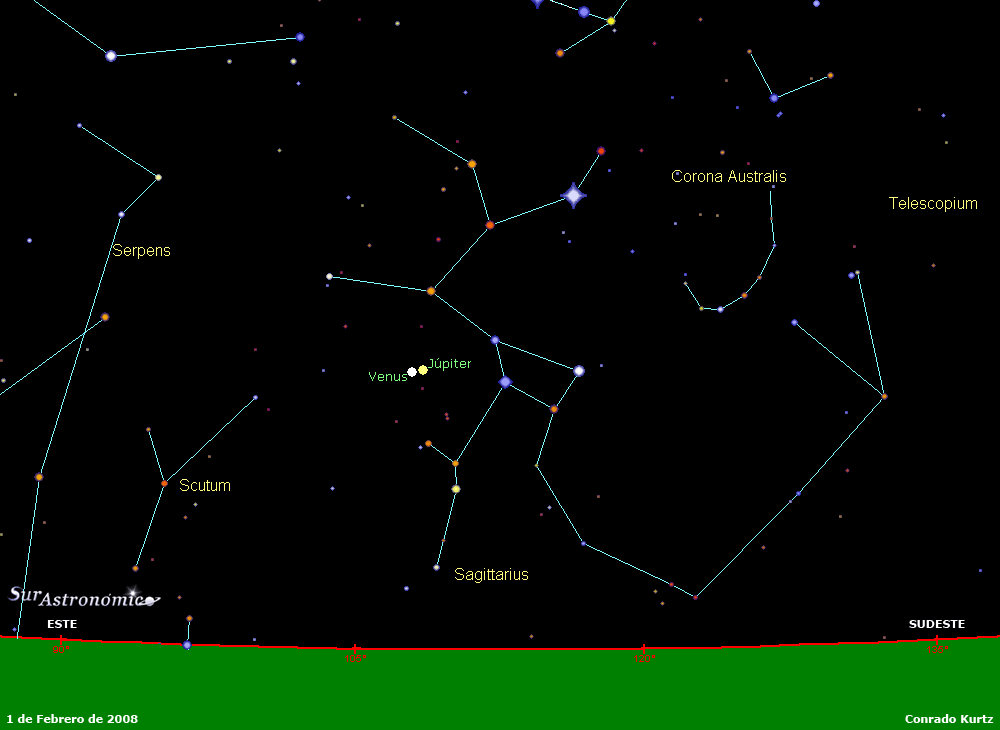 En estos días también se observa poco antes de la salida del Sol una nueva conjunción de estos "dos luceros", siendo el 1 de Febrero el día de mayor proximidad de estos astros, separados por unos 35 minutos de arco (ligeramente mayor a un diámetro lunar).
