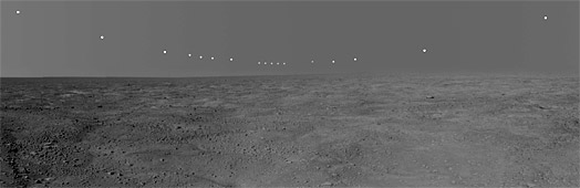 Desde su ubicación en el ártico marciano, la Phoenix Mars Lander tomó imágenes del Sol durante un período de 11 días marcianos (soles) mostrando, a similitud de las locaciones en altas latitudes terrestres, como el Sol nunca se oculta bajo al horizonte en esta época. Las tomas del Sol fueron realizadas entre el día 46 al 56 en la superficie de Marte, entre las 22 y las 2 hora solar local. La imagen del terreno fue tomada de forma separada.