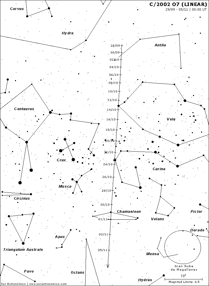 Según información reciente, imágenes CCD del cometa C/2002 O7 (LINEAR) tomadas el 27/09 revelan que el cuerpo no resistió el paso por el perihelio y su núcleo se ha fragmentado, haciendo imposible su observación.