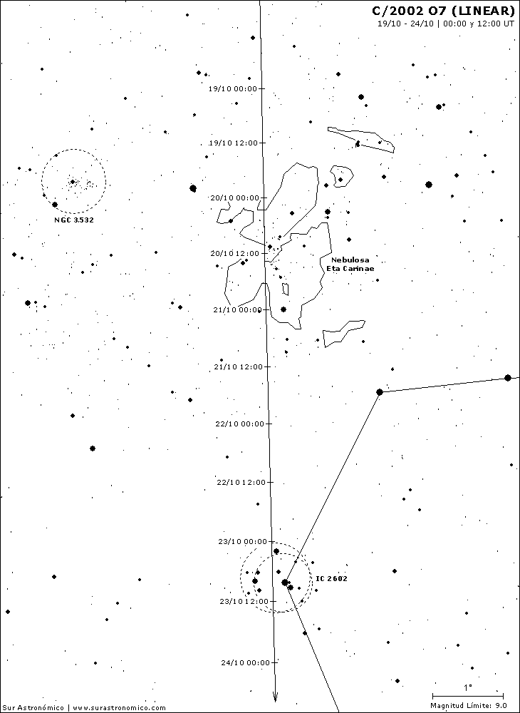- 20/10 - Pasa sobre la nebulosa de eta Carinae.